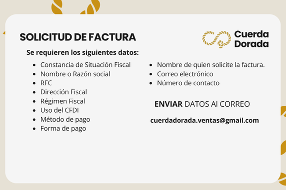 Para iniciar el proceso escríbanos un correo a cuerdadorada.ventas@gmail.com